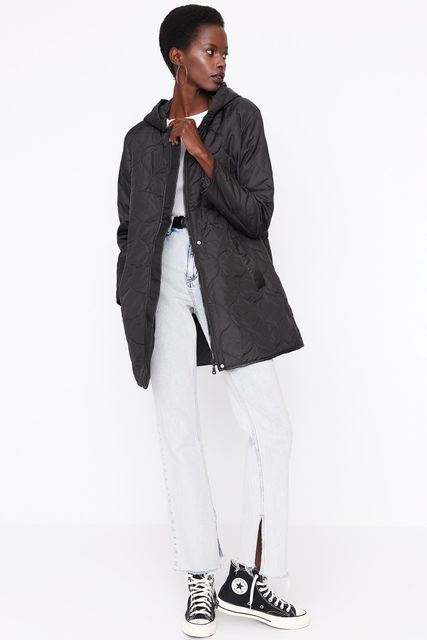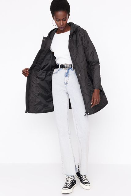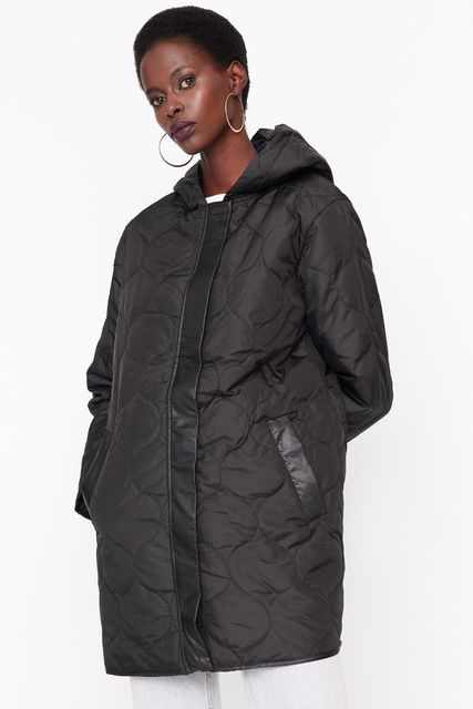 TRENDYOLMİLLAمعطف مبطن موسمي كبير الحجم أسود