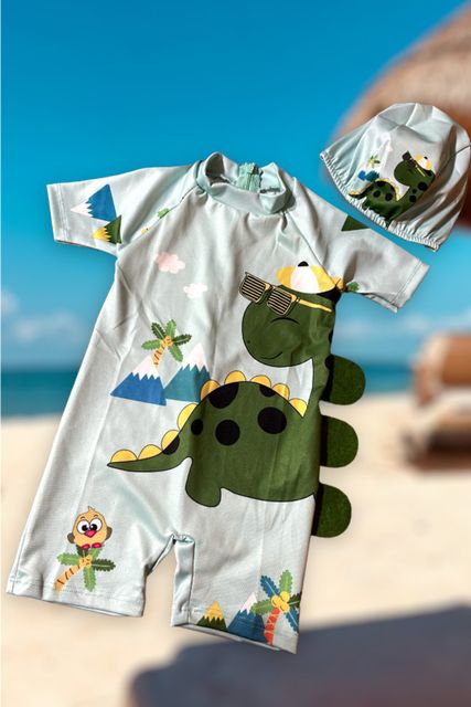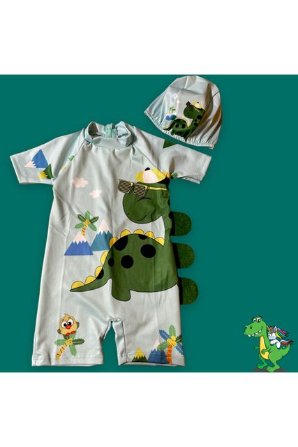 Lolliboomkidsشعر الأولاد بأكمام قصيرة وسحاب خلفي بنمط ديناصور لطيف مفصل لباس السباحة محب هدية