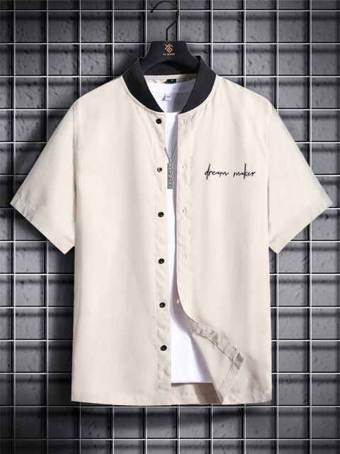 قميص بياقة بيسبول برسومات متباينة للرجال بدون تي شيرت