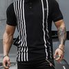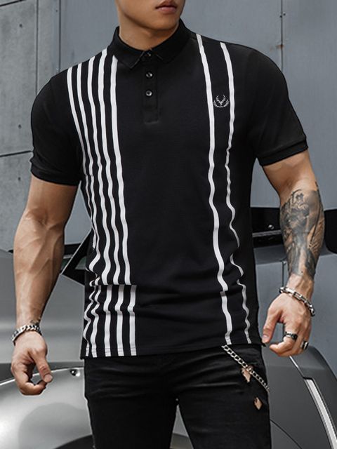 Sheinقميص بولو رجالي مخطط وطبعة الغزلان