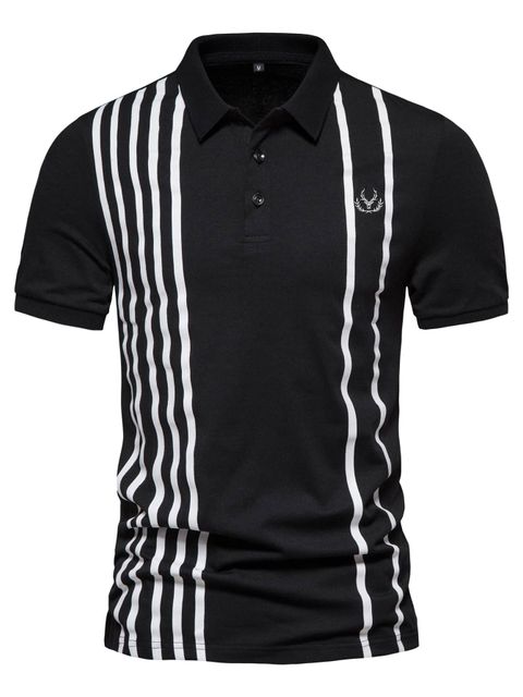 قميص بولو رجالي مخطط وطبعة الغزلان