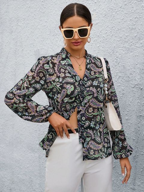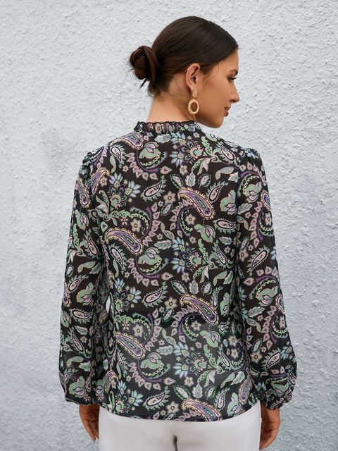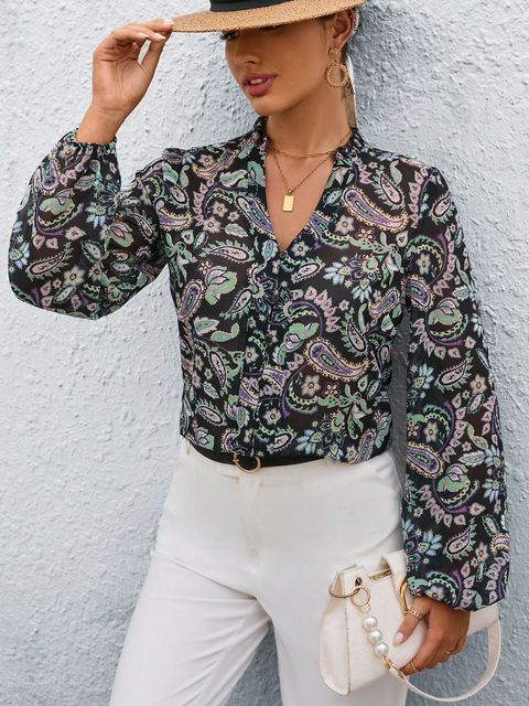 Sheinبلوزة بأكمام فانوس بطبعة بيزلي