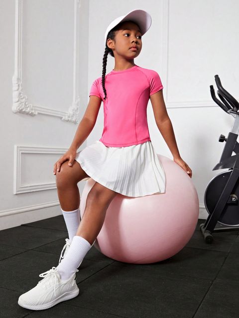 SheinSHEIN سكورت رياضي بطيات للبنات مع جيب للهاتف