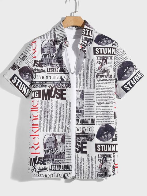 SHEIN قميص رجالي بطباعة جريدة بدون تي شيرت