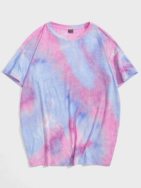 SheinSHEIN تي شيرت بأكتاف منسدلة صبغ التعادل للرجال
