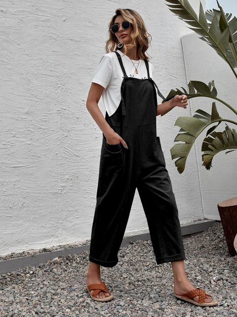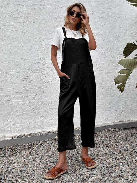 Sheinبذلة الحمالة الصلبة بجيب مزدوج