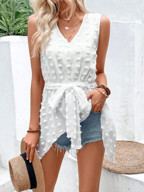 Sheinبلوزة سويسرية بدون أكمام بحزام غير متماثل