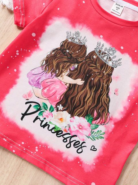 Sheinطفل الفتيات 1 قطعة الأزهار والشكل الجرافيك المحملة