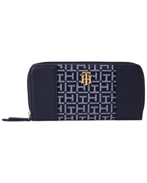 • يُعد Tommy Hilfiger® Antonella II Zip Around Wallet Square Monogram Jacquard طريقة سهلة وأنيقة لحمل بطاقاتك وأموالك ، وهو خيار رابح.