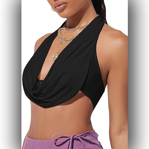 قميص Verdusa النسائي ذو الرقبة المكشكشة وربطة العنق بدون ظهر