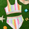 Sheinمايوه بيكيني للبنات بأشرطة ملونة