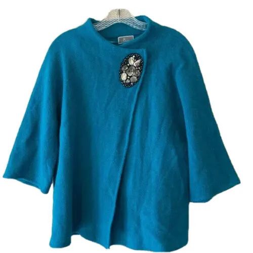 JM Collectionكارديجان نسائي من JM Collection صوف أزرق مخضر مزين بجوهرة