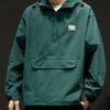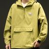 سترة بغطاء للرأس بجيب بغطاء قلاب وتفاصيل مرقّعة للرجال بنصف سحاب