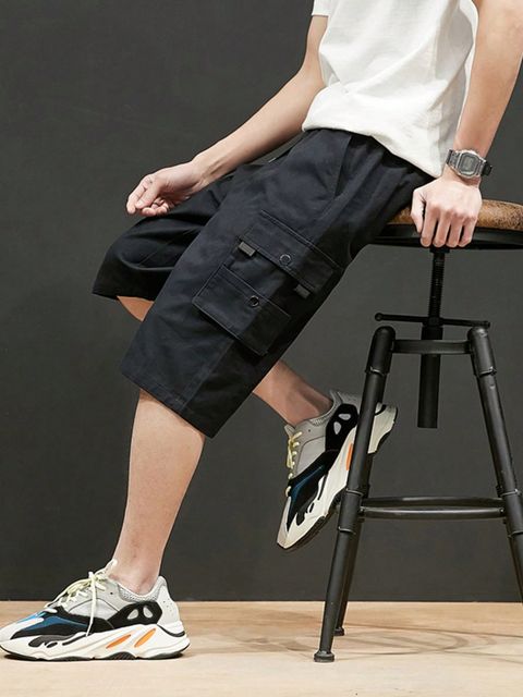 شورت برمودا رجالي بفتحة جانبية وجيب بفتحة جانبية