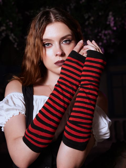 ROMWEROMWE القوطي قفازات مخططة طباعة أصابع