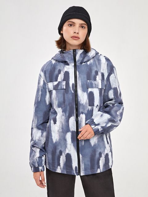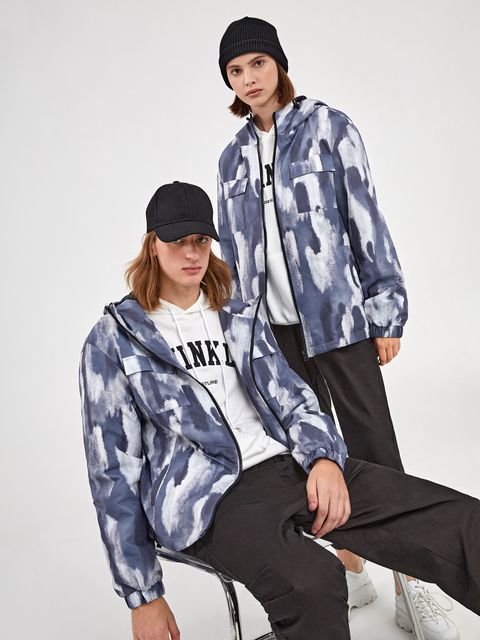 SheinSHEIN للجنسين 1 قطعة التعادل صبغ الرباط مقنعين جيب رفرف قطرة الكتف زيبر سترة