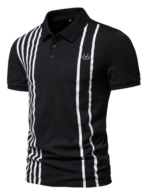 قميص بولو رجالي مخطط وطبعة الغزلان