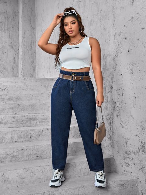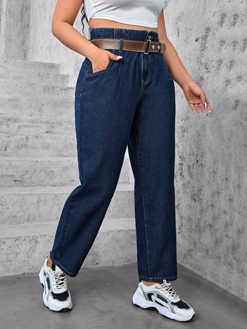 Sheinبنطلون جينز عالي الخصر بدون حزام