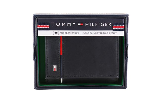 محفظة تومي هيلفيغر الجلدية Leif RFID ثلاثية الطي مع هوية مزدوجة