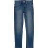 Product Information From Calvin Klein, these jeans in a soft stretch fabric Item #20105302 Features 2 front pockets (single coin pocket); 2 back pockets skinny leg Zippered fly with button closure; belt loops Fabric & Care: denim fabrication mid-rise Cotton/spandex/polyester Machine wash; tumble dry