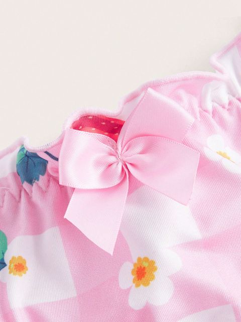 ROMWE Kawaii Heart Print Lettuce Trim Bow Decor Panty