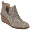 Side cutouts in supple suede top off the wood-like wedge heel of the boho-chic Kallie booties by TOMS.