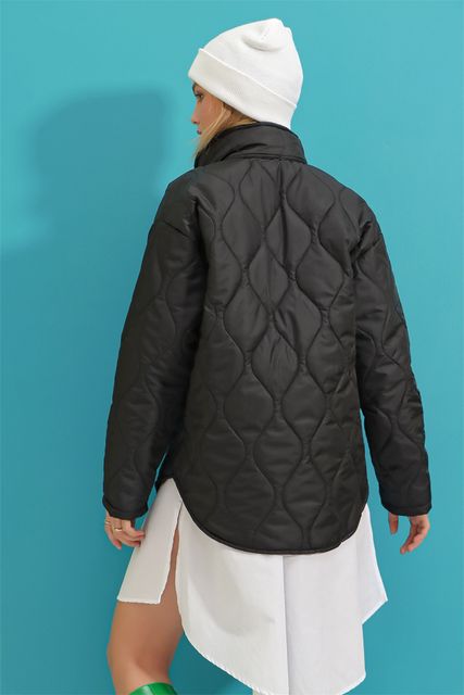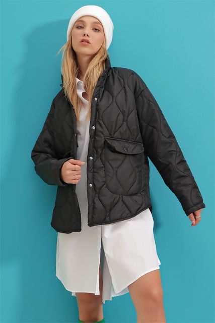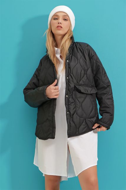 Trend Alaçatı StyleWomen's Black Baby Collar Lined Pocket Quilted Coat