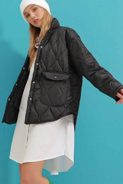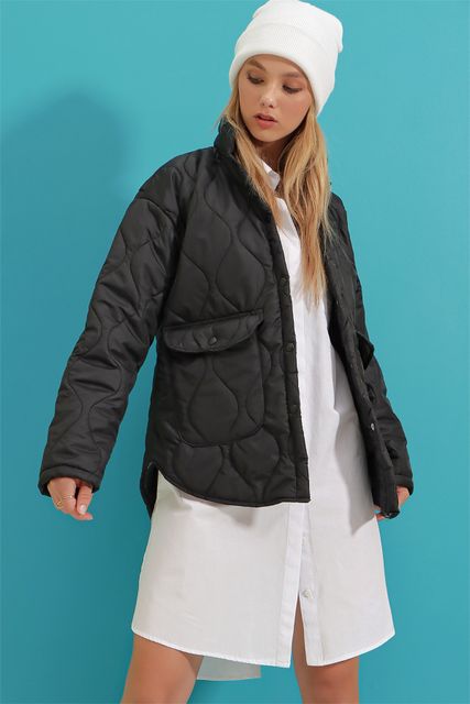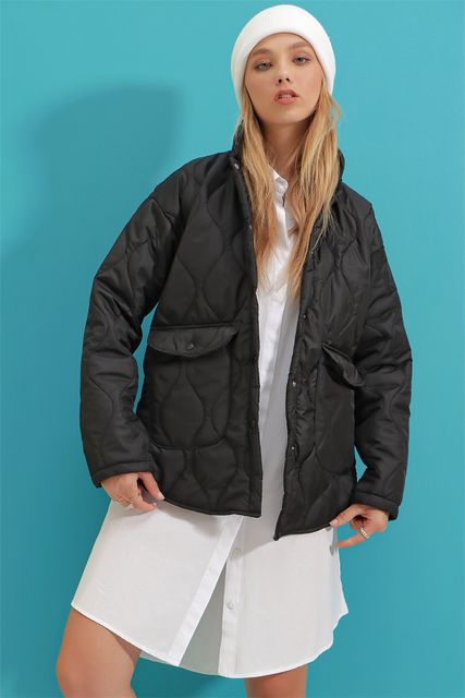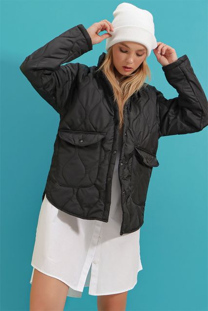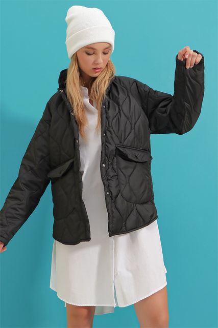- Alaçatı Style Baby Collar Lined Pocket Quilted Coat With Quilted Fabric, Snap Fastener, Functional Pockets and Lined Inside Model, Very Stylish, Providing a Fit Appearance with the Most Important Part of the Sport Combination in Cool Weather, and Being a Complementary Part of Your Style with its Form Stance, Alaçatı Style Baby Collar Lined Pocket Quilted Coat is waiting for you!!