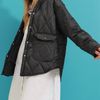 Women's Black Baby Collar Lined Pocket Quilted Coat