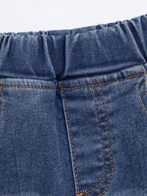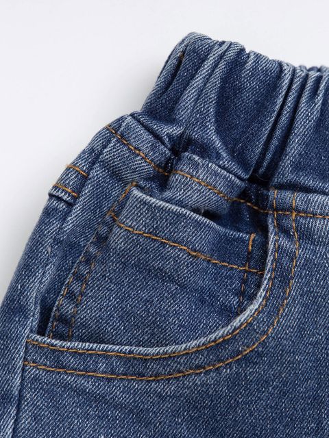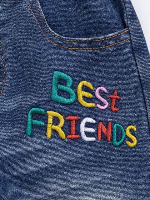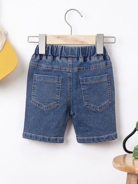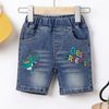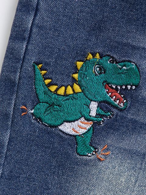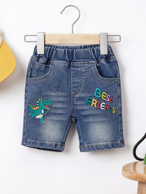 Baby Boy Dinosaur & Letter Embroidery Washed Denim Shorts