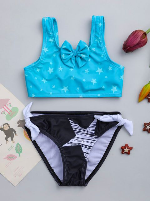 Baby Girl Star Print Bow Front Bikini Swimsuit