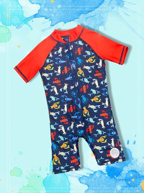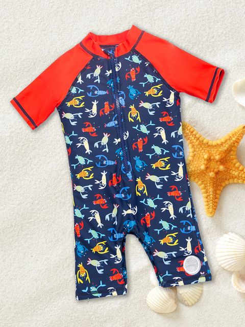 SheinBaby Lobster Print Zipper Front One Piece Swimsuit