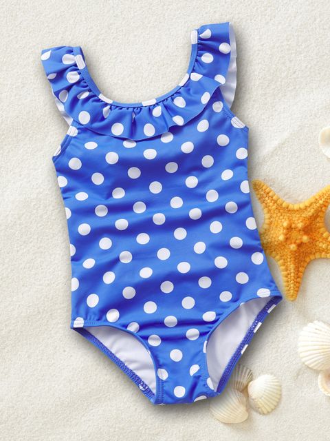 SheinBaby Polka Dot Print Ruffle Trim One Piece Swimsuit