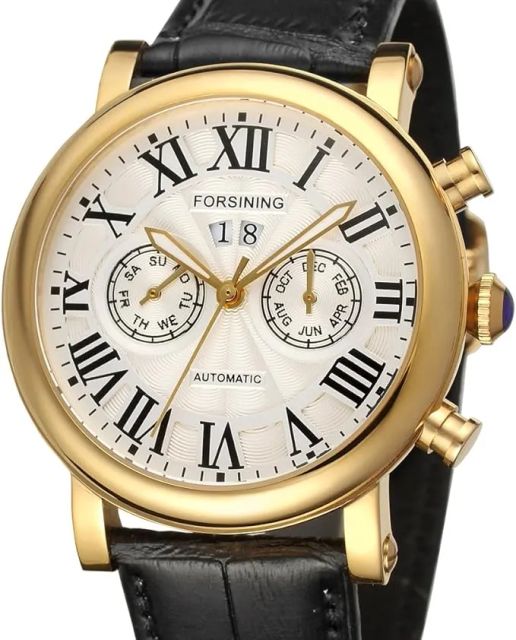 FORSININGForsining Men's Luxury Brand Day Calendar Automatic Stainless Steel Case Leather Strap Wrist Watch FSG9407M3G1