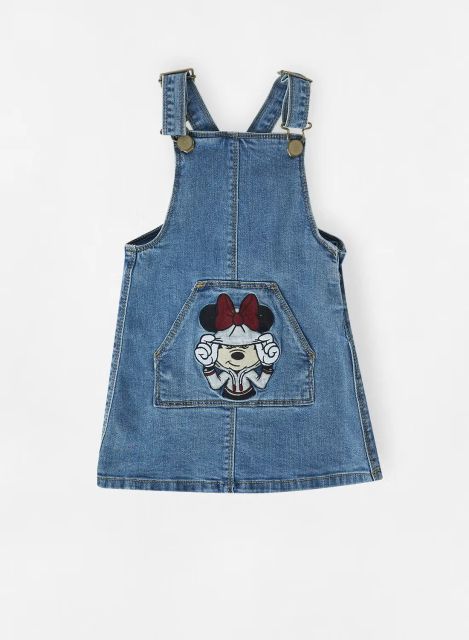 Girls Minnie Mouse Denim Dungaree Dress Blue