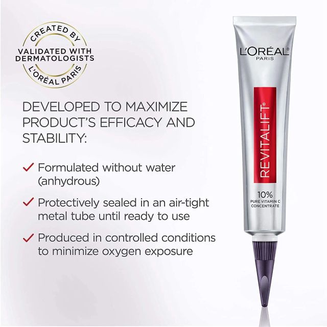 L'Oreal Paris Revitalift 10% Pure Vitamin C Face Serum, Radiant and Brighter Skin, Visibly Reduced Wrinkles, Fragrance Free 1 0z.