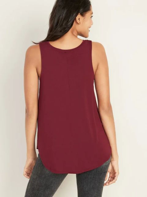 - Our Luxe tank tops are supremely soft and drape beautifully. You deserve it. High, rounded neck. Sleeveless. Curved hem. Center seam in back. Super-soft rayon jersey, with comfortable stretch.