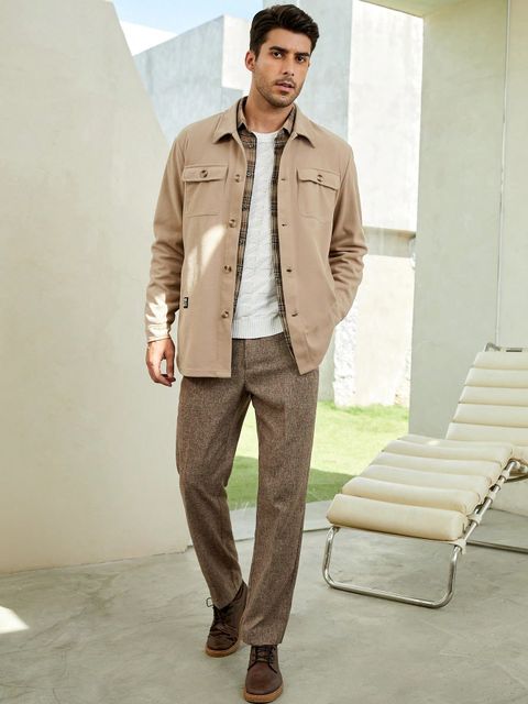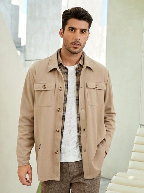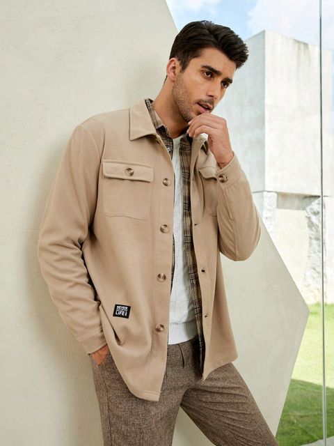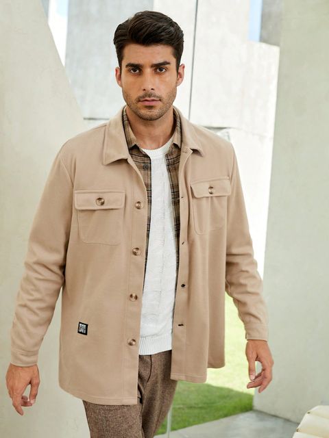 Manfinity Homme Men Letter Patched Flap Pocket Jacket