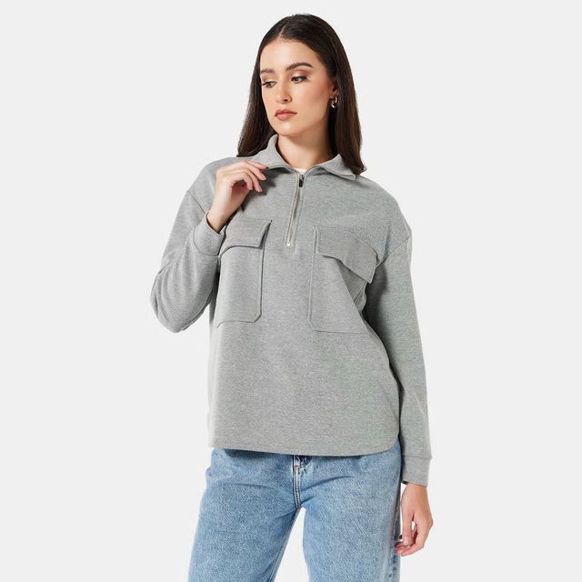MangoMANGO Flap Pocket Half-Zip Top - Grey