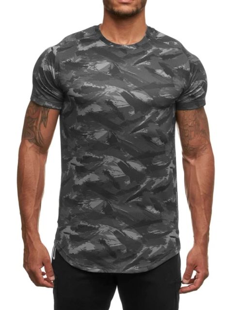 Men Allover Print Curved Hem Sports Tee