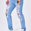 Men Bear Patched Ripped Frayed Skinny Jeans