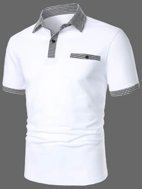 SheinMen Houndstooth Contrast Collar Polo Shirt