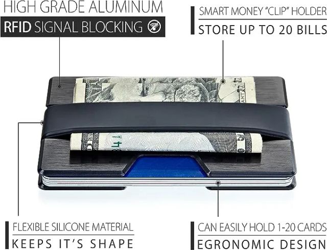 - SUPREME QUALITY ✔ ROCO is committed to designing quality products. It’s for this reason the ROCO MINIMALIST wallet was designed to be ultra slim crafted with a high grade aluminum. Crafted with a patented, flexible silicone band, the ROCO MINIMALIST RFID Blocking Money Clip is highly flexible, yet won't lose its strength & stability.