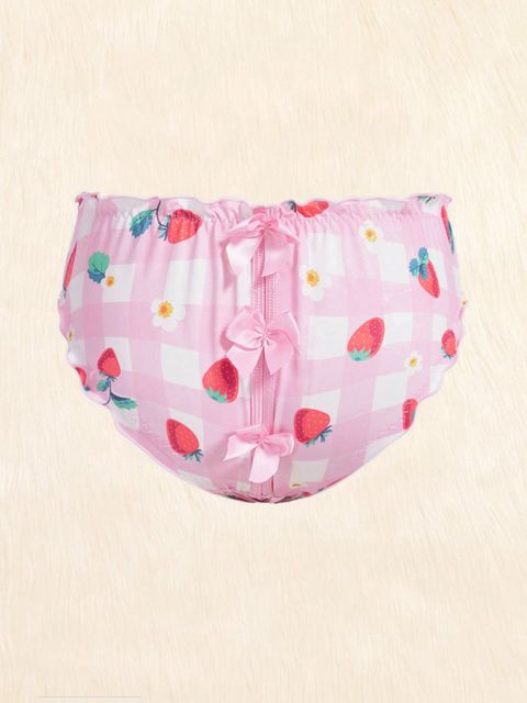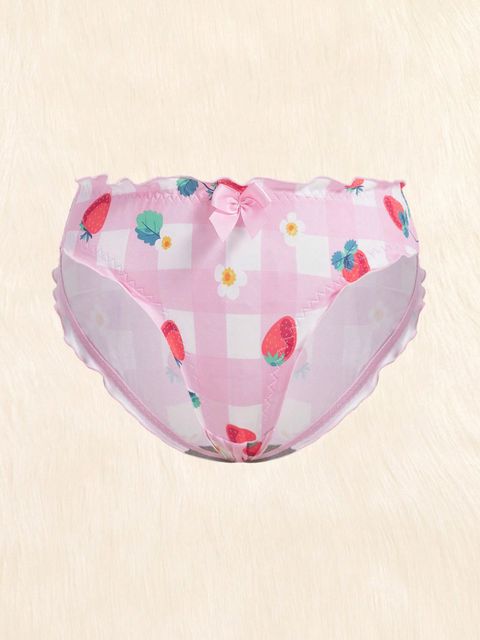 ROMWE Kawaii Heart Print Lettuce Trim Bow Decor Panty