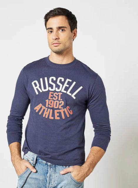 Russell Athletic Logo Print Crew Neck T-Shirt Navy
