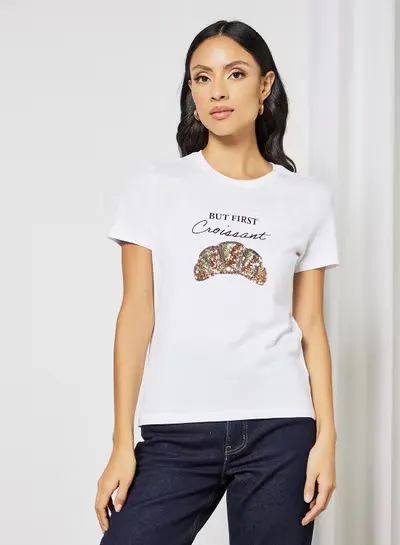 Sequin Text Print T-Shirt White
