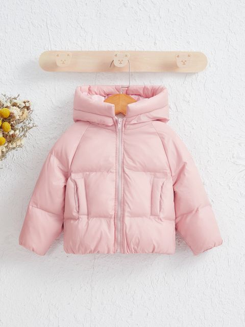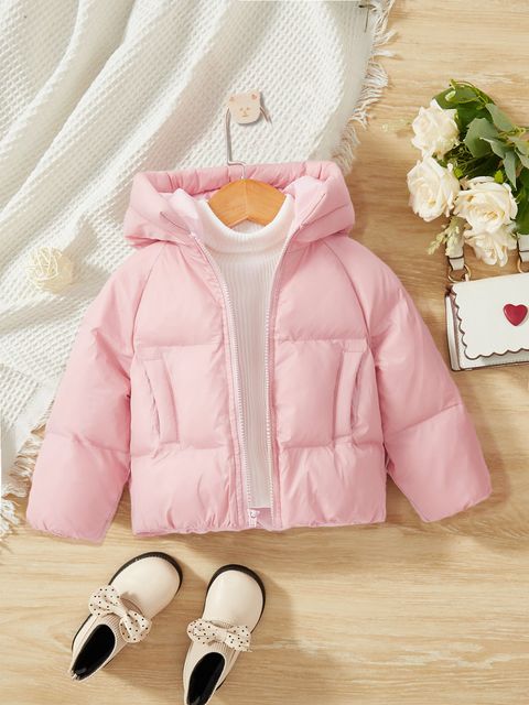 SHEIN Baby Raglan Sleeve Hooded Puffer Coat Without Sweater
