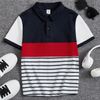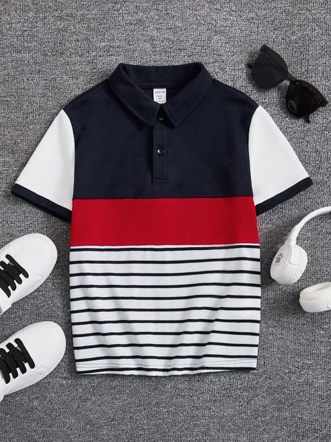 SHEIN Boys Striped Print Colorblock Polo Shirt