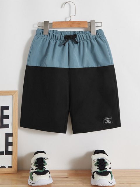 SHEIN Boys Two Tone Letter Patched Detail Drawstring Waist Shorts