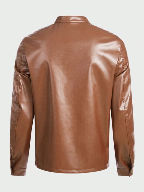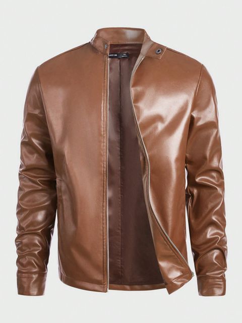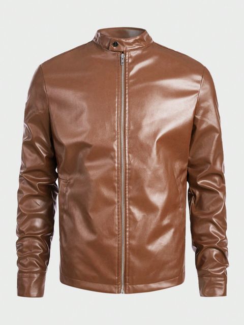 SHEIN Men Zip Up PU Leather Jacket